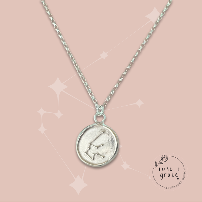 - Aquarius Zodiac Sign Pendant Necklace in Silver